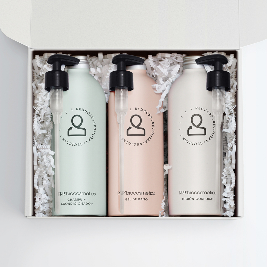La primera generació de productes d'higiene corporal d'alta qualitat, biodegradables i amb envàs retornable. Envàs d'alumini 100% reciclable que es reemborsa al client en ser tornat.
